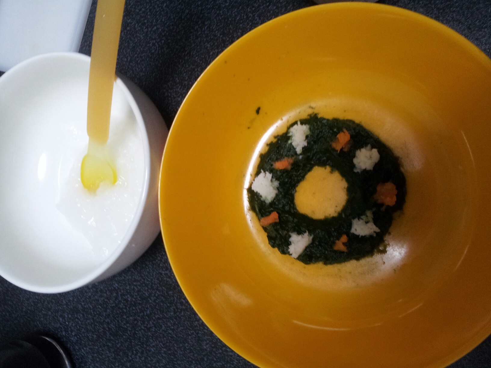 今日はミルク粥にして、いつも慣れている味作戦にしてみた!